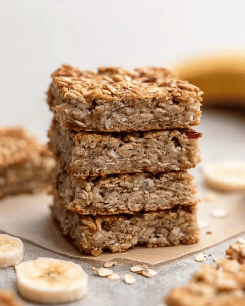If you're looking for a protein boost, each bar includes around 3 grams of protein. This makes the 3 ingredient healthy banana oatmeal bars an excellent choice for a post-workout snack or a satisfying breakfast on the go.