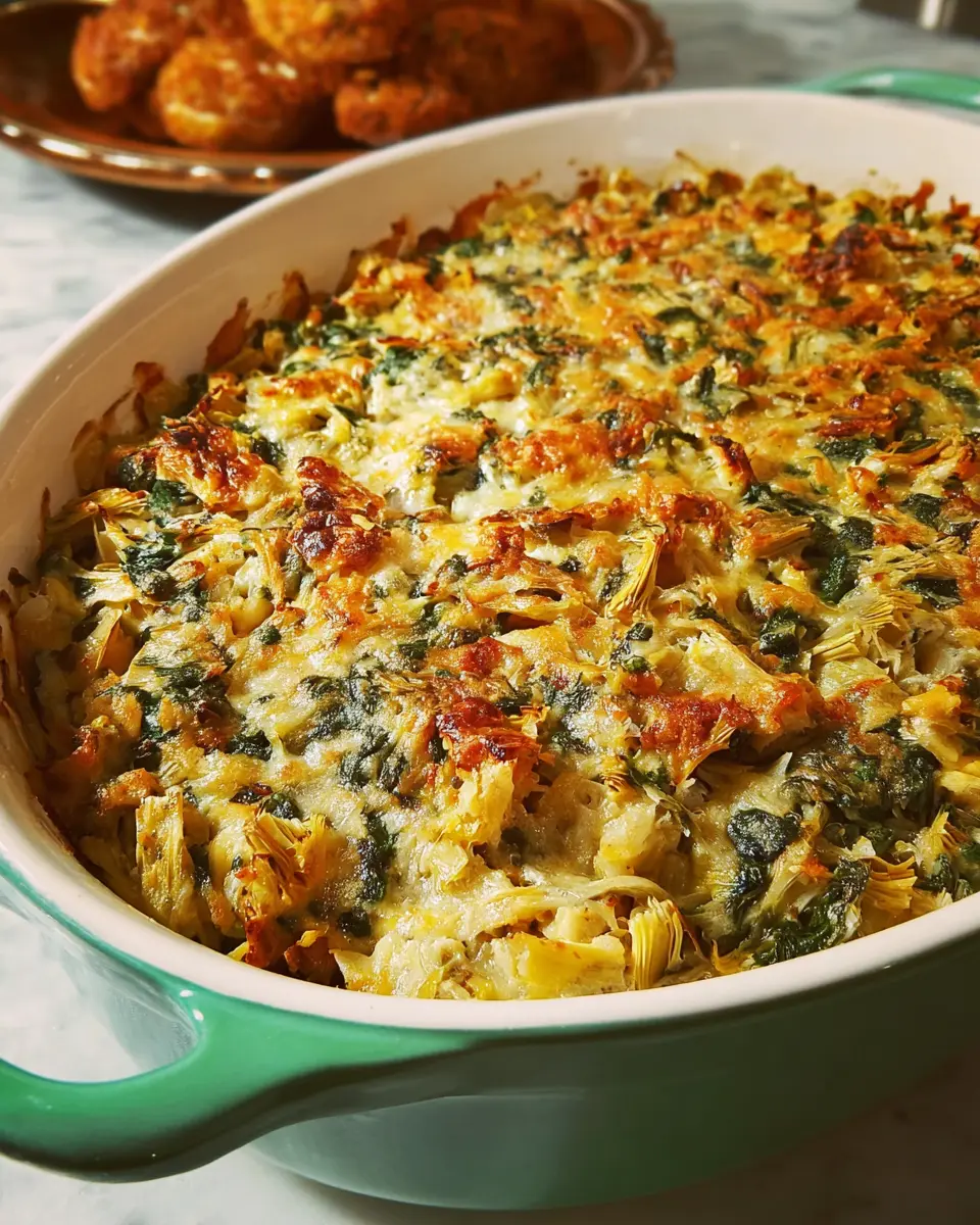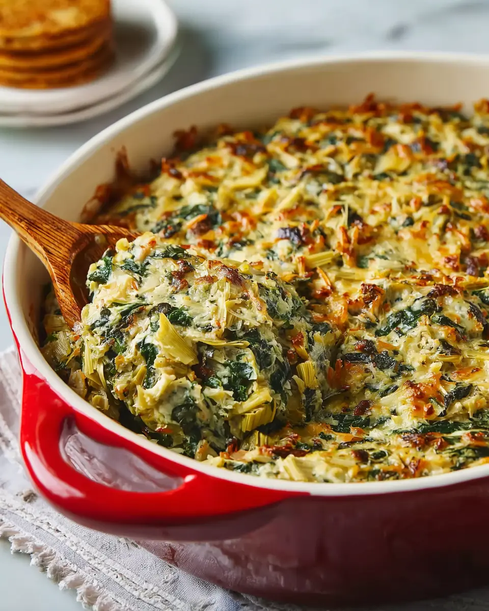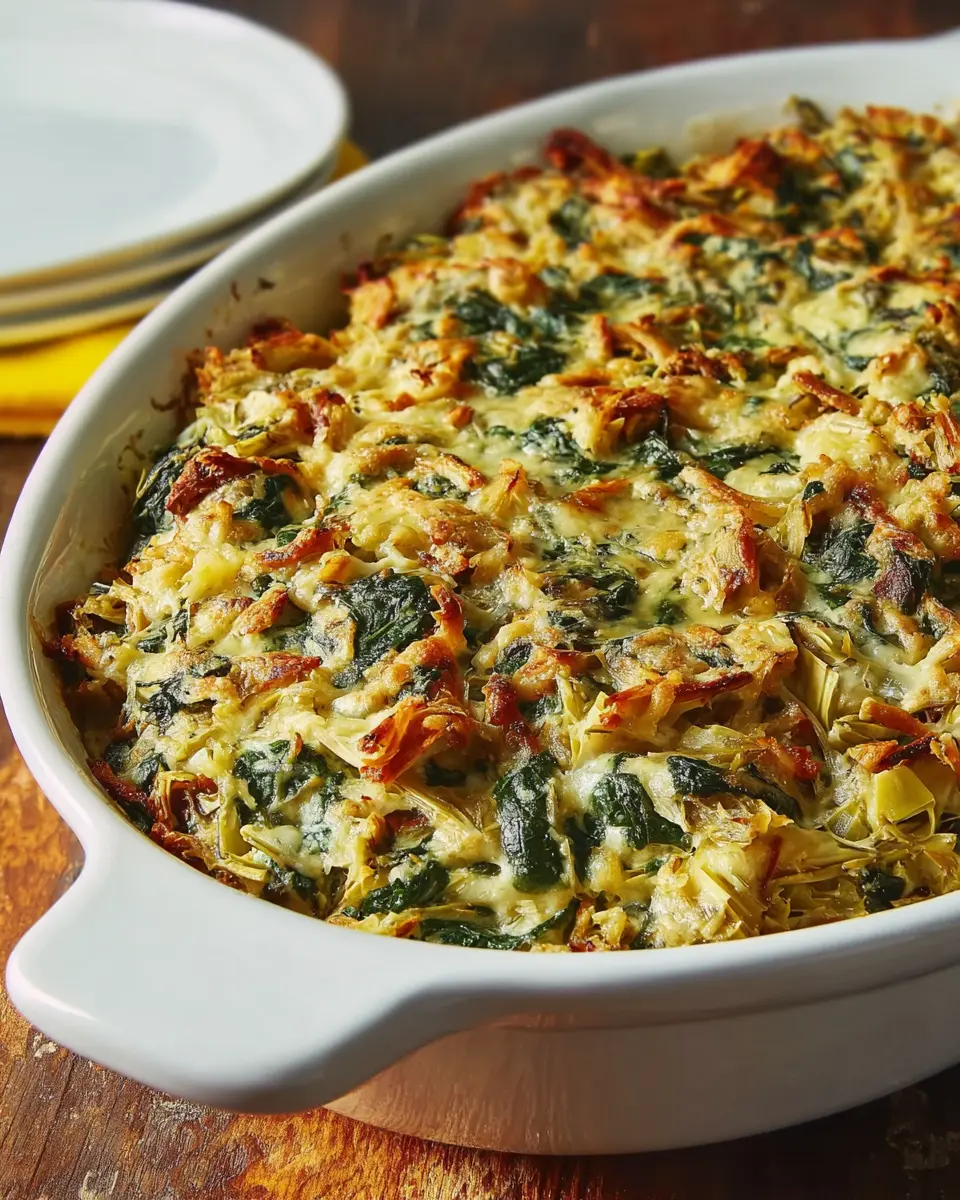 In summary, the Amazing Spinach Artichoke Casserole is a delightful dish that brings a creamy, savory punch to any table. Perfect for gatherings or cozy family dinners, this recipe is both satisfying and easy to prepare. Don’t hesitate to share it at your next event—it’s sure to impress!