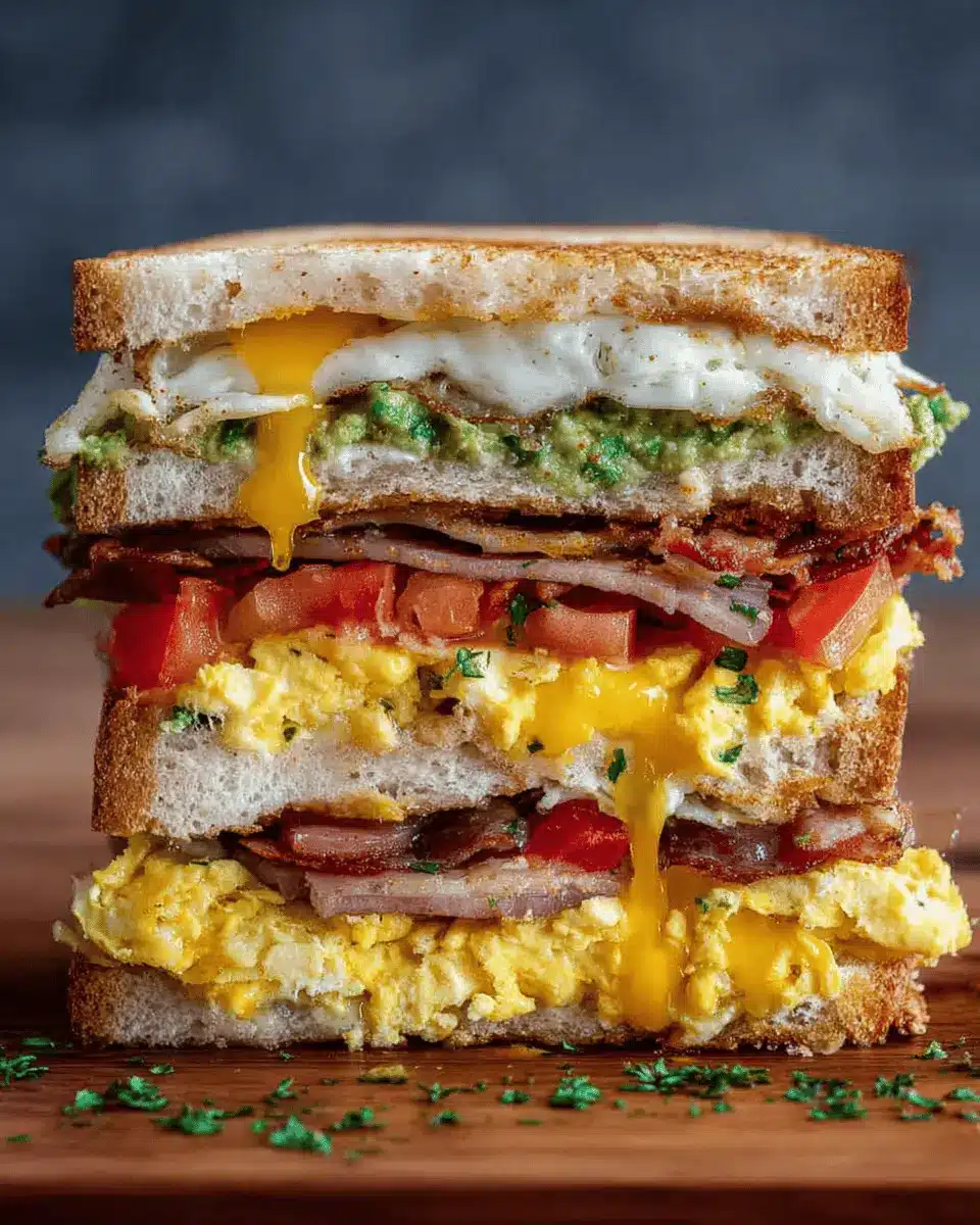The Breakfast Club Sandwich is not just any ordinary morning meal; it’s a delightful fusion of flavors that can turn a typical breakfast into a gourmet experience. Imagine sinking your teeth into layers of perfectly toasted bread, savory turkey bacon, rich beef sausage, creamy avocado, and fluffy scrambled eggs. The magic truly happens when these classic ingredients come together, creating a culinary symphony that ensures you’ll savor every bite.