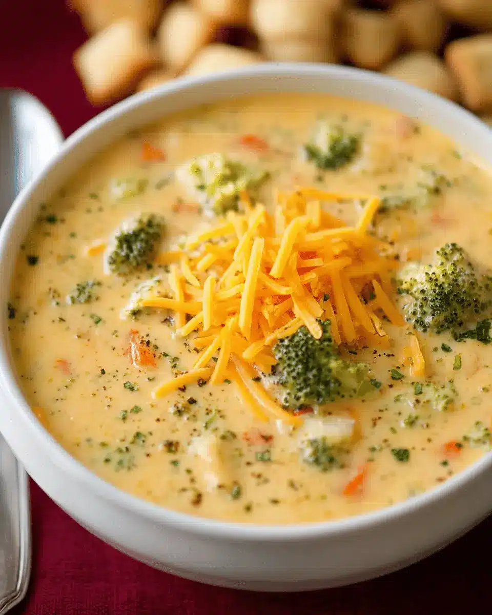 Presentation matters, even for a cozy bowl of soup. Pour your Cheddar Broccoli Potato Soup into vibrant, wide-mouthed bowls for a warm, inviting look. Top each serving with a sprinkle of shredded cheese and a swirl of cream for a gourmet touch. Add a sprinkle of fresh herbs like parsley or chives for color and freshness.