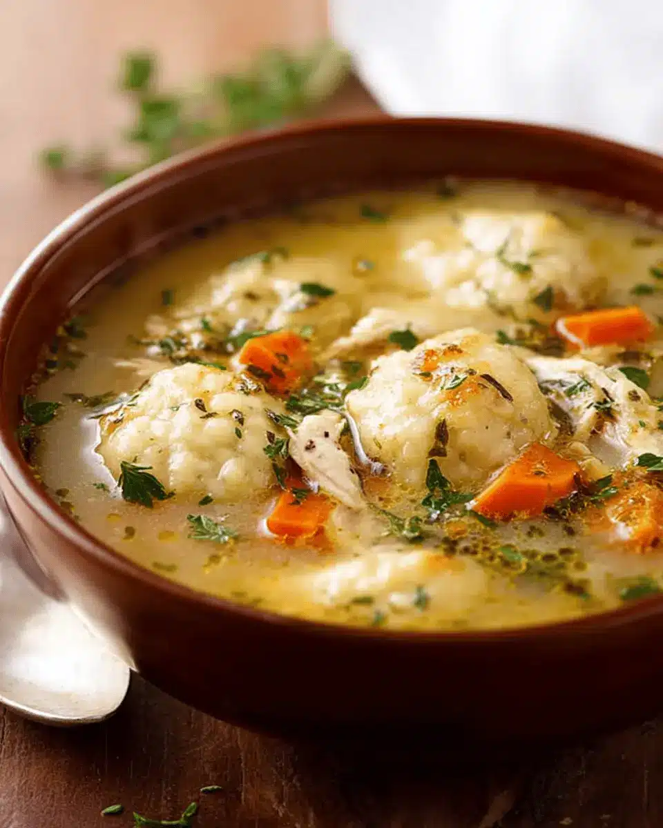 For those fluffy, herb-infused dumplings, avoid overmixing the batter; a gentle hand keeps them tender. If you prefer denser dumplings, you can use less milk, but remember that lighter dumplings will float perfectly in that hearty broth. When dropped into the simmering soup, let them steam without stirring to maintain their soft structure. Perfecting dumpling texture can turn a good soup into an extraordinary feast!