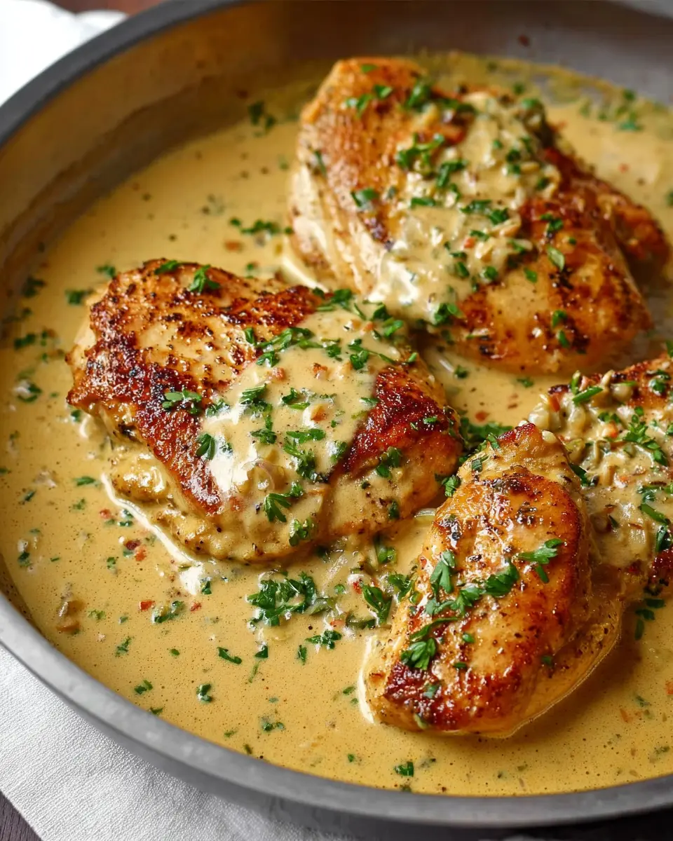 - Finally, return the cooked chicken breasts to the skillet and spoon the creamy sauce over top. Allow the chicken to heat through. Serve with fresh chopped parsley (optional), and enjoy!
