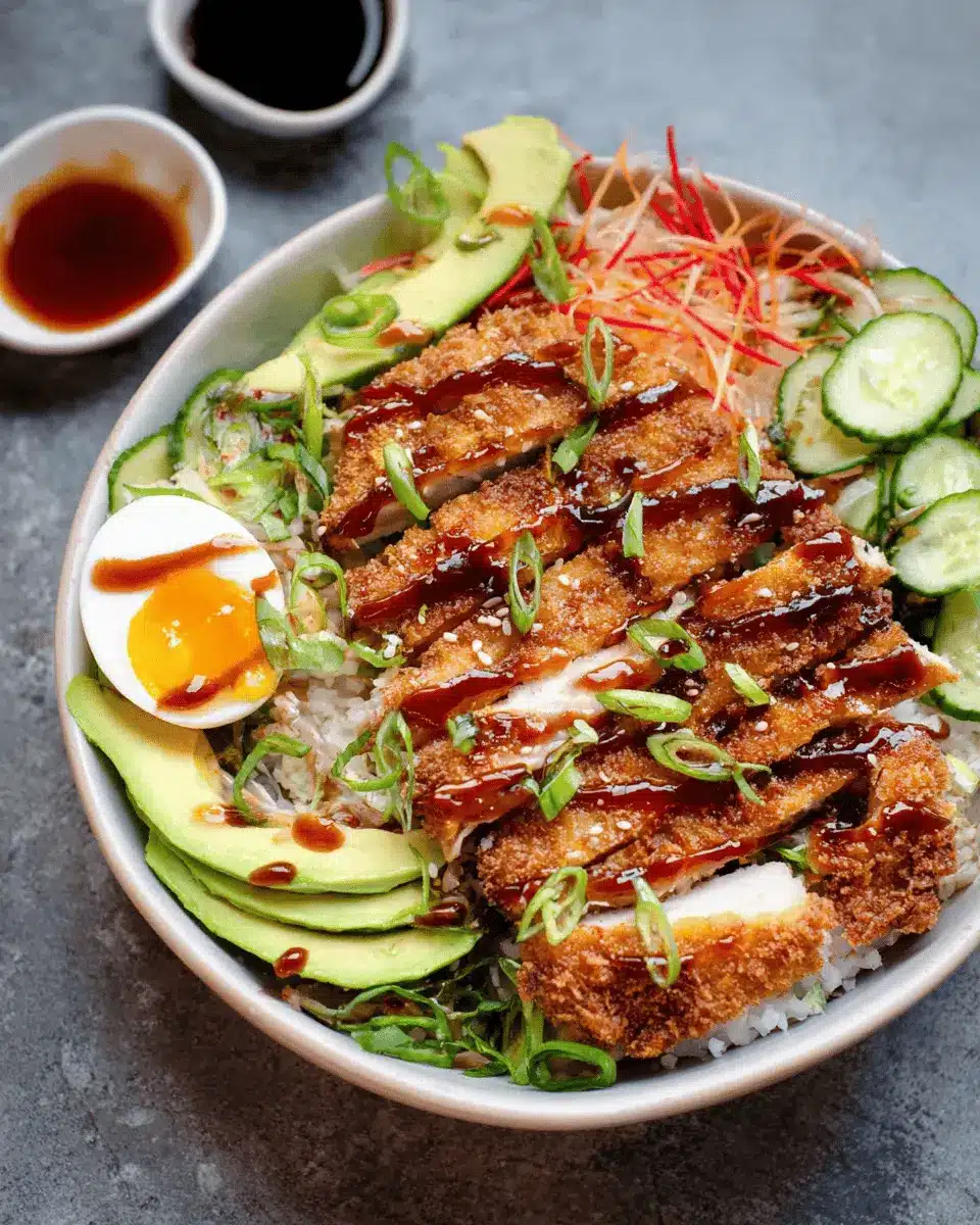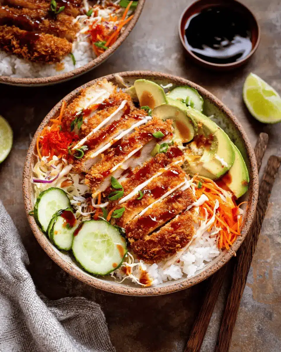 Get creative! While tonkatsu sauce is a classic, don’t shy away from experimenting. Try teriyaki sauce for a sweet, savory kick, or drizzle with sriracha for some heat. Top your bowls with avocado slices, roasted sesame seeds, or even nori flakes for a boost of umami. The possibilities are endless, making your crispy chicken katsu bowls a canvas for your culinary creativity!