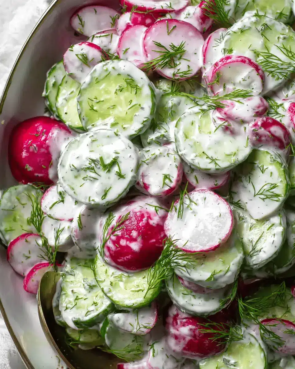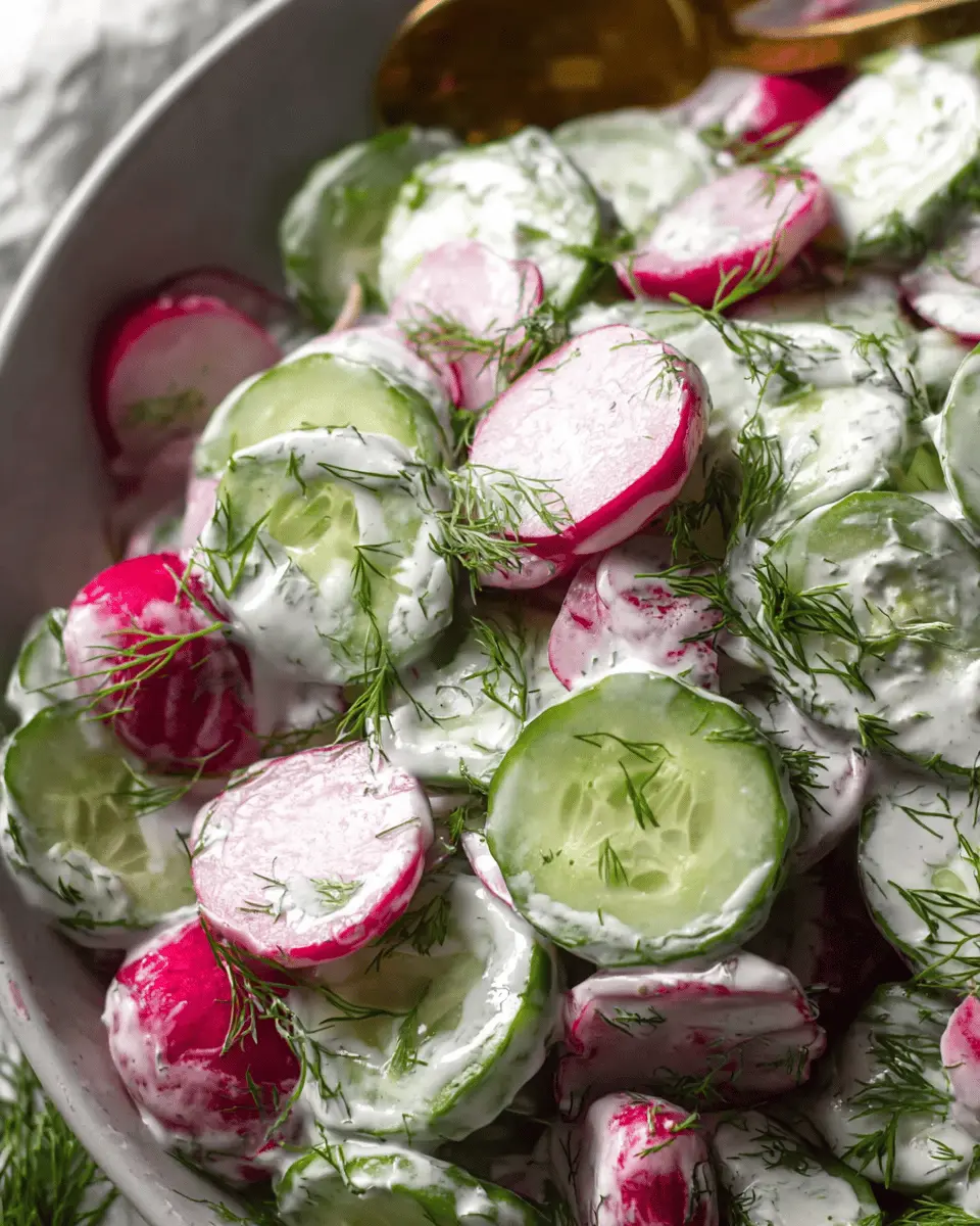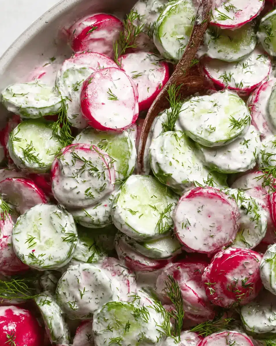 Cucumber Radish Salad w/ Yogurt Dill Dressing