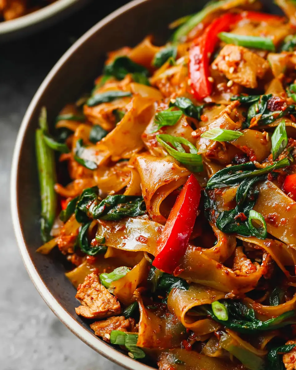 Are you ready to take your taste buds on a thrilling adventure? Drunken noodles, or Pad Kee Mao, are a vibrant Thai dish that promises a delightful explosion of flavors. Originating from Thailand, this delicious stir-fry features wide rice noodles, perfectly cooked chicken (or your protein of choice), fresh vegetables, and aromatic Thai basil. The magic happens in the sauce, which combines savory oyster and soy sauces with a spicy kick from chili paste—it's a culinary journey all on its own.