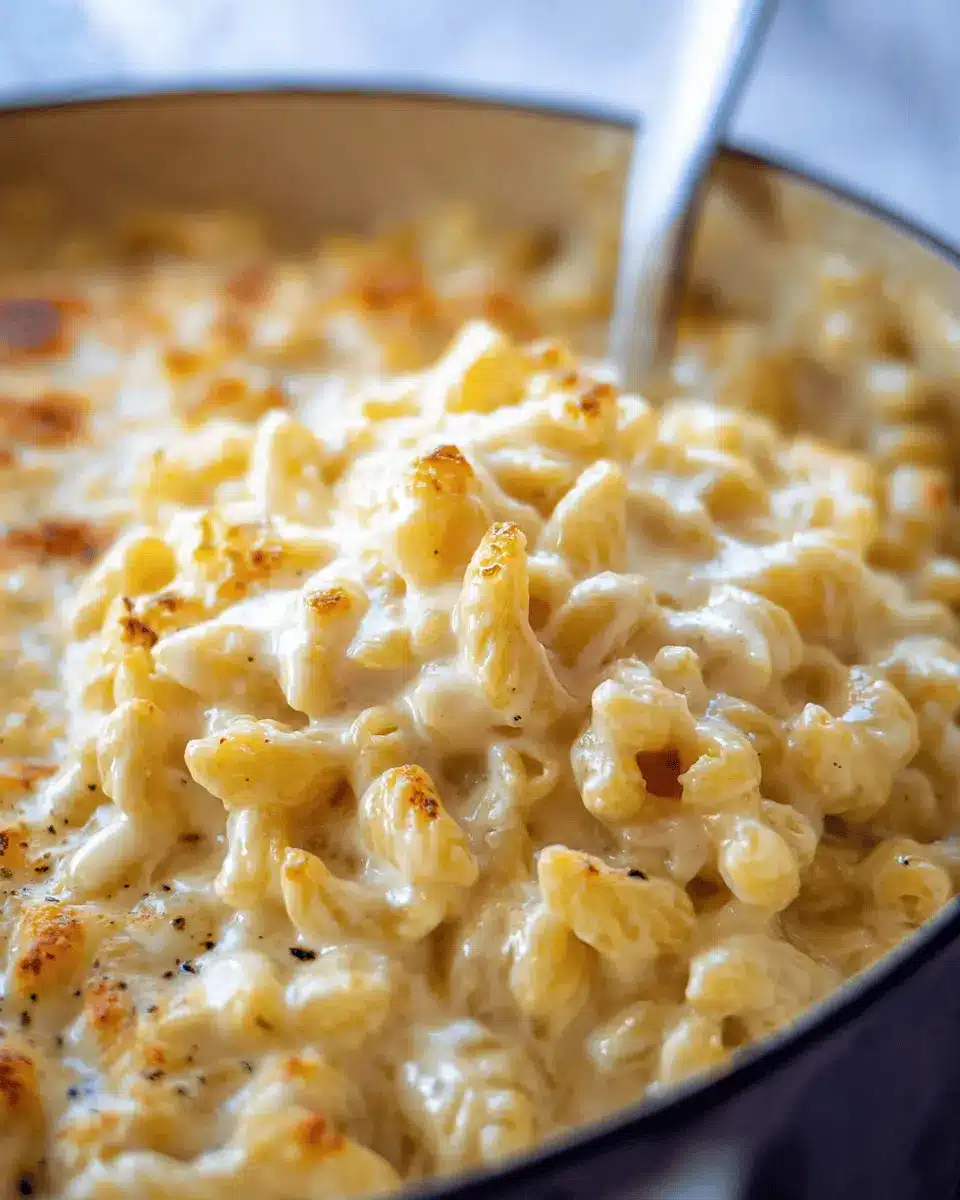 Now comes the fun part—seasoning! Stir in salt, black pepper, and your optional ingredients: nutmeg and mustard powder for a flavor boost. Taste the sauce to make sure it’s just right. Remember, this is where you can add a bit of personality to your easy creamy mac and cheese.