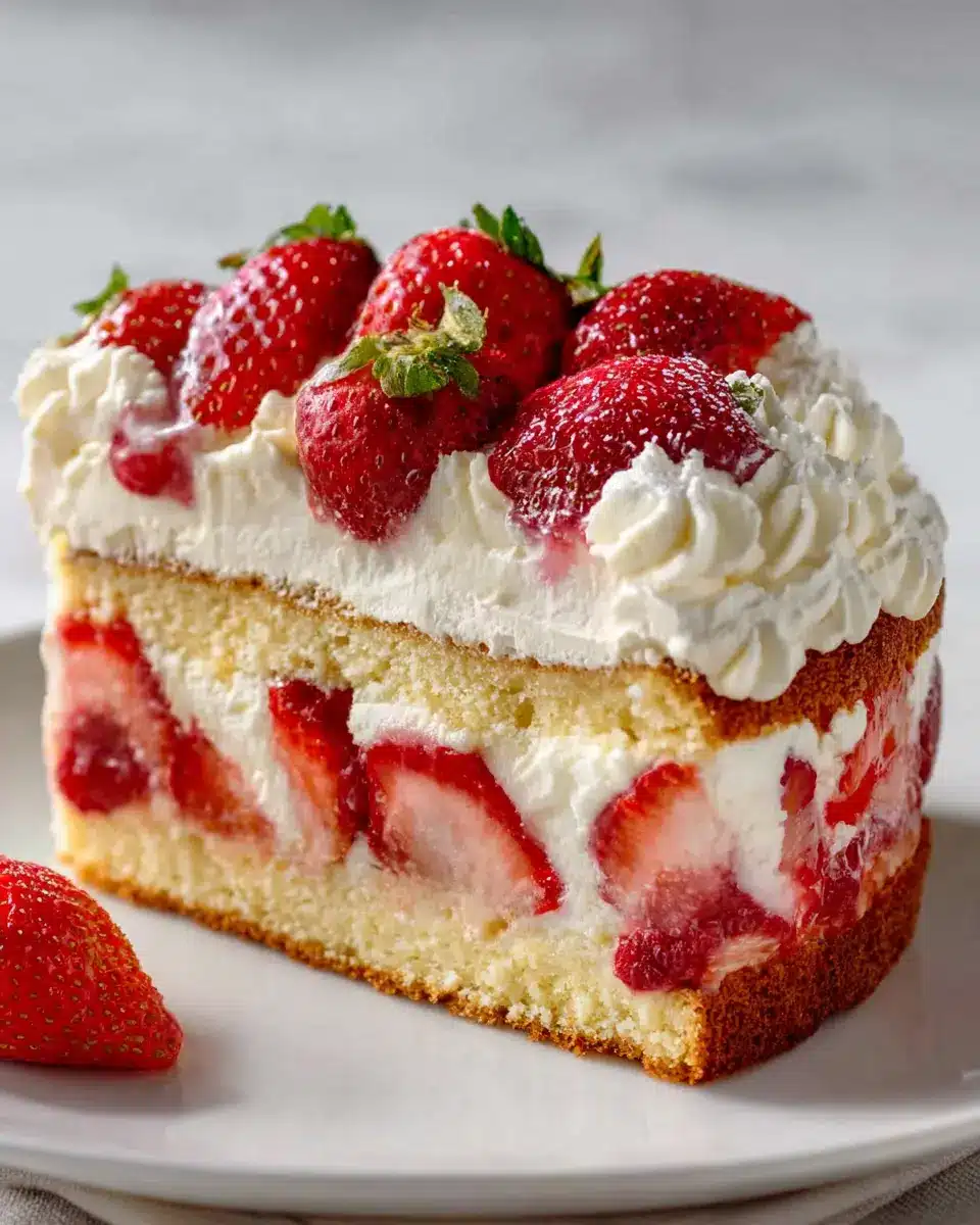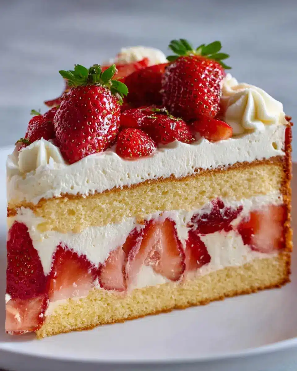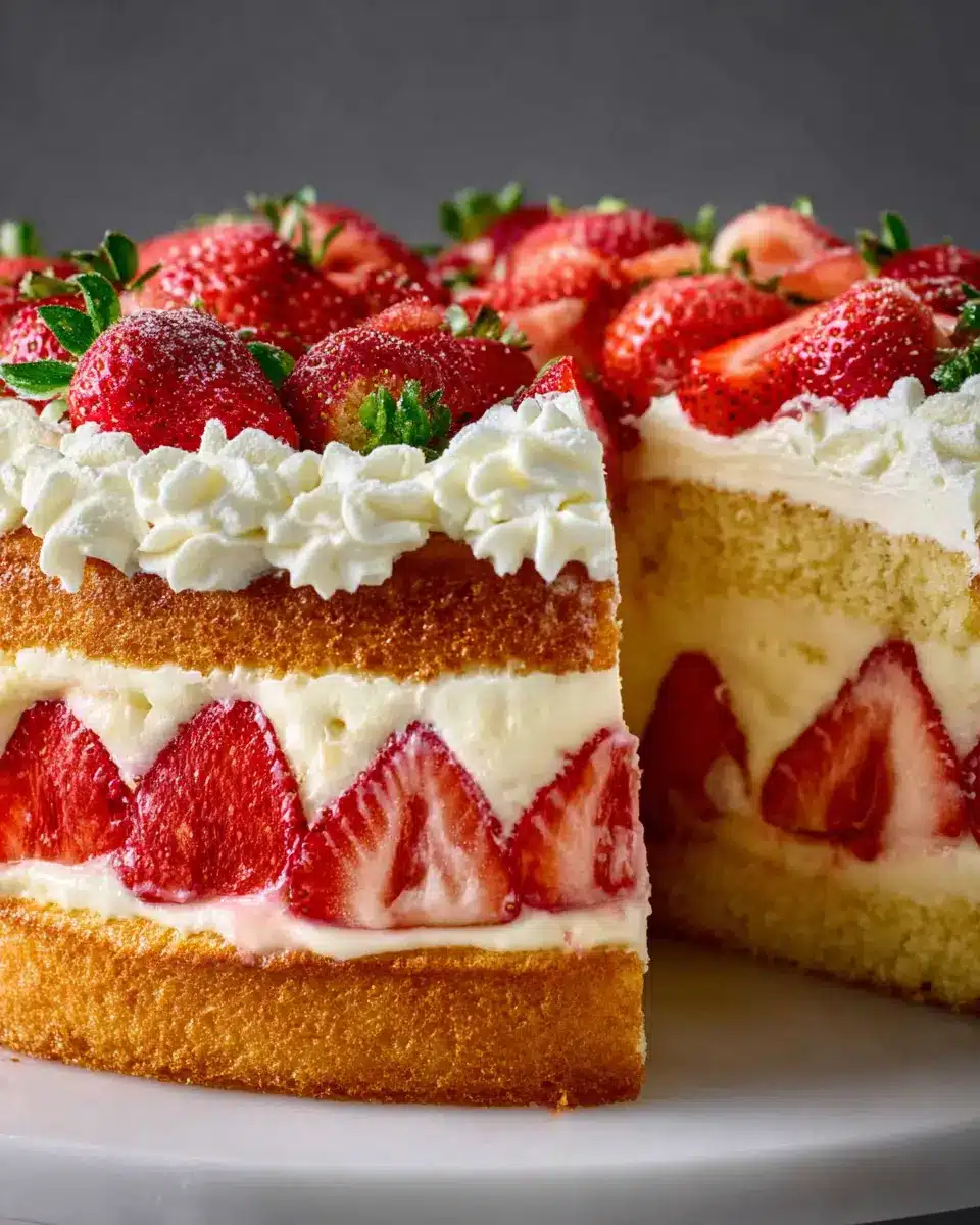 Finally, it’s time for assembly! Using a serrated knife, slice the cooled cake in half horizontally. Place the bottom layer snugly back into the prepared pan. Surround it with the halved strawberries, cut-side against the ring of the pan. Fill the center with whole strawberries, cut-side down. Spread about 3 cups of your fluffy cream filling over the berries—this is where you can get creative! After gently tapping the pan to settle the cream, add the top layer of cake, cover it with the remaining cream, and refrigerate for several hours or overnight.