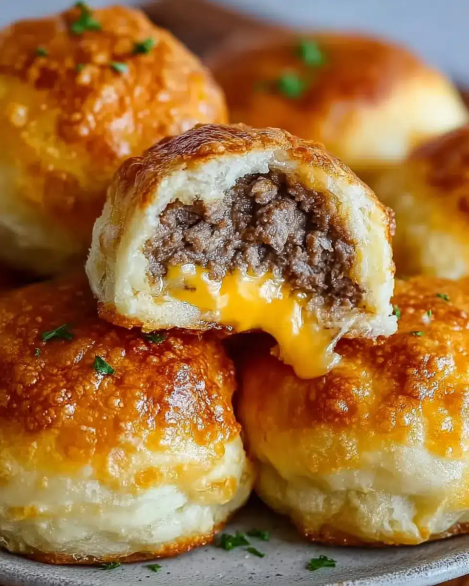 If you're on the lookout for a delightful snack or a fun addition to your dinner table, look no further than these incredible Garlic Parmesan Cheeseburger Bombs! This simple yet mouthwatering recipe brings together the best flavors of a cheeseburger, all wrapped up in a warm, buttery biscuit. Imagine biting into a golden pocket that oozes savory ground beef, gooey cheddar, and that unforgettable hint of garlic—talk about a flavor explosion!