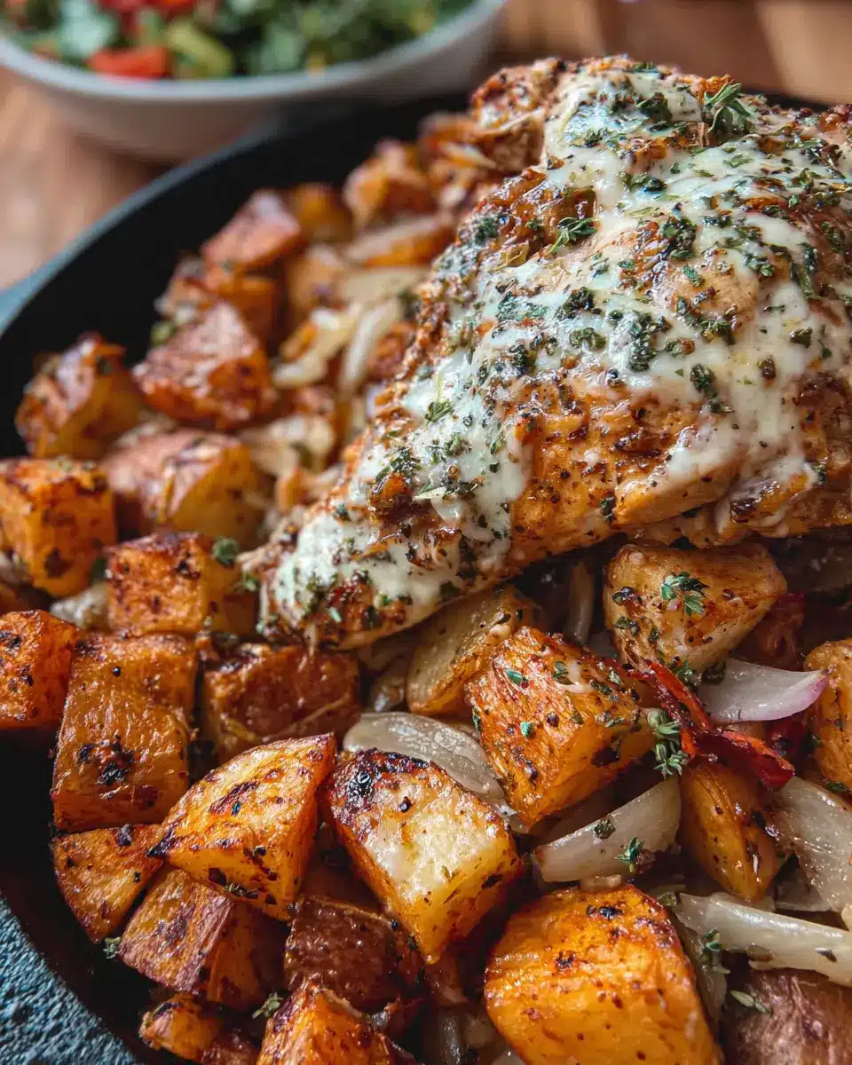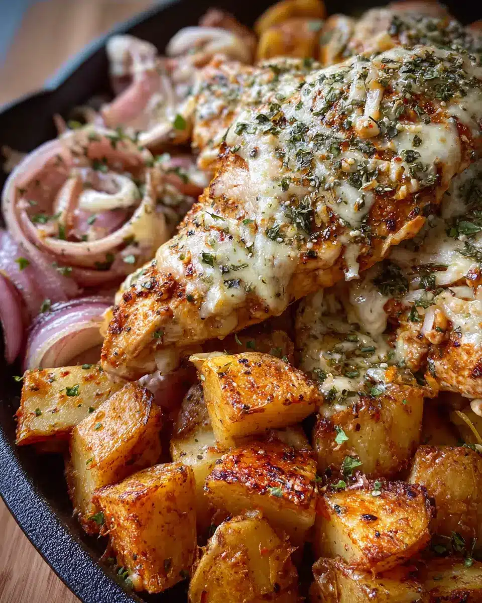 Feel free to tailor the Garlic Parmesan Chicken and Potatoes recipe to suit your pantry or dietary preferences! You can swap chicken breasts for turkey or even tofu for a plant-based option. If you don't have russet potatoes, red potatoes or sweet potatoes work beautifully too. Craving something extra? Toss in some vibrant veggies like bell peppers or broccoli for added nutritional value. Don't hesitate to experiment with different cheeses, such as cheddar or pepper jack, for a fun twist on this recipe! Remember, cooking is all about personal touches, letting you make this dish uniquely yours!
