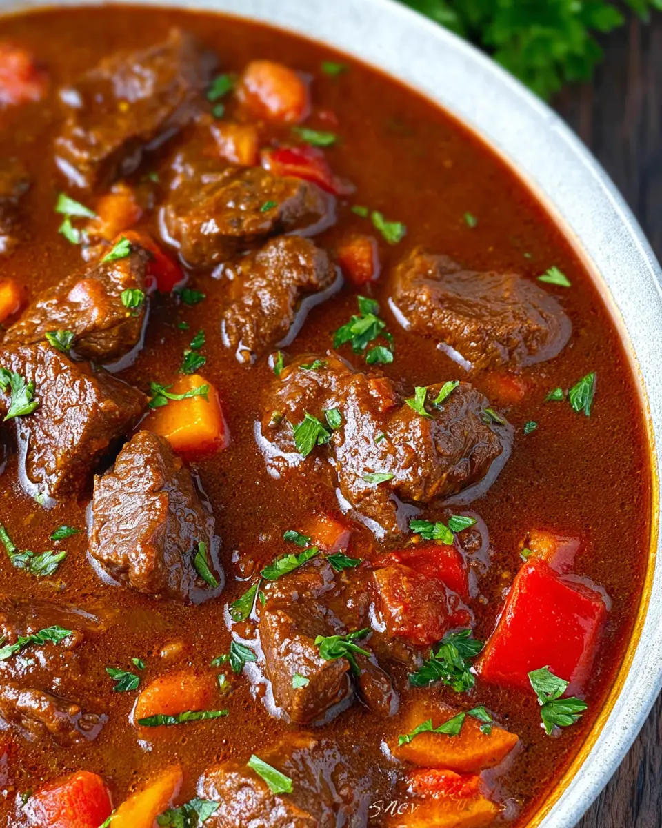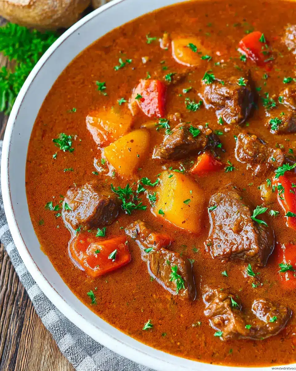 Adjusting Thickness: If your goulash turns out too thick, simply stir in extra beef broth or water until you reach the desired consistency.