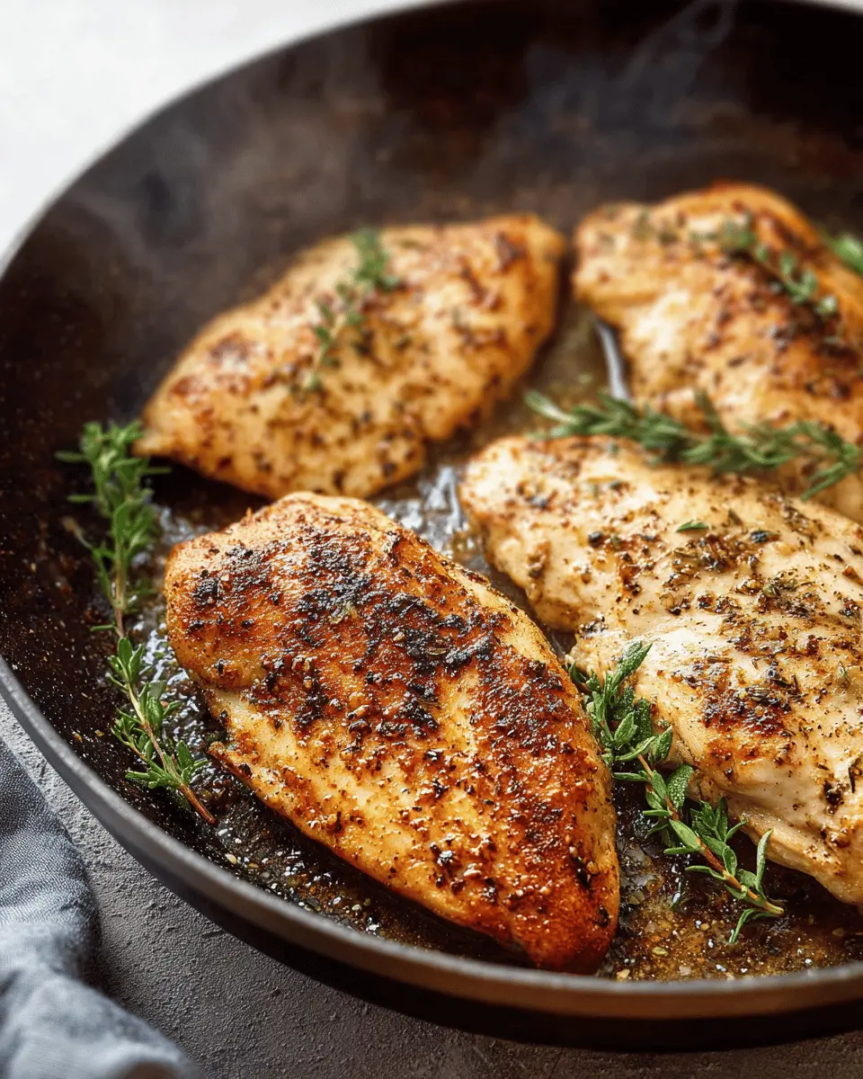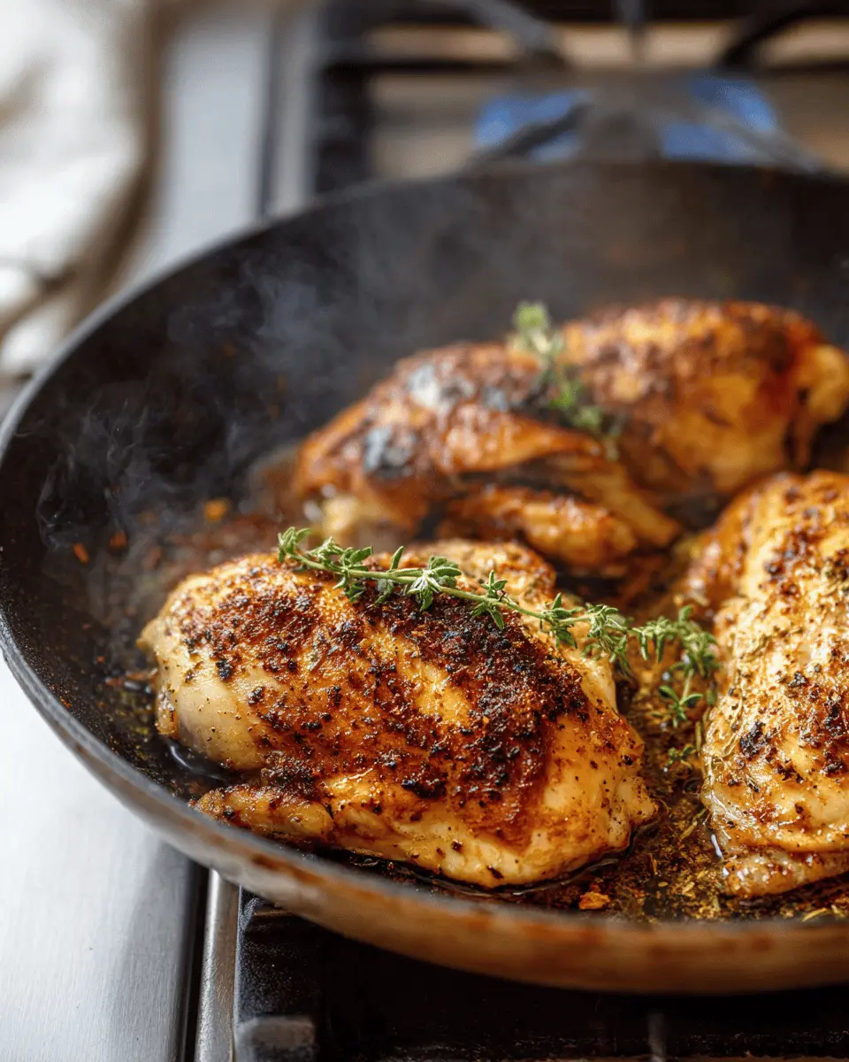 For that alluring golden brown crust on your chicken, remember to dry the chicken thoroughly before seasoning. This step helps achieve better browning. Additionally, use medium-high heat during the first side's cooking phase. Once the crust is formed, reduce the heat to medium to finish cooking the chicken perfectly without burning the seasonings. Don't forget to let it rest for a few minutes after cooking; this helps retain the juicy flavor you're aiming for!