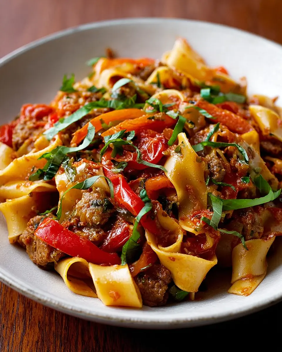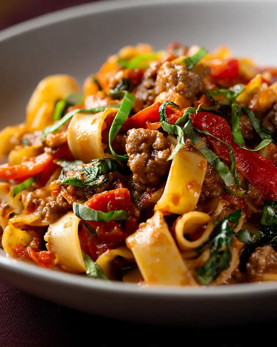 Feeling adventurous? You can transform this recipe with ease—swap out the sausage for a veggie crumble or tofu for a delightful meatless option. With just a handful of ingredients and under an hour, you can create a delicious home-cooked meal that impresses without the stress. Ready to dive in? Let’s uncover the full recipe for these irresistible Italian Drunken Noodles!