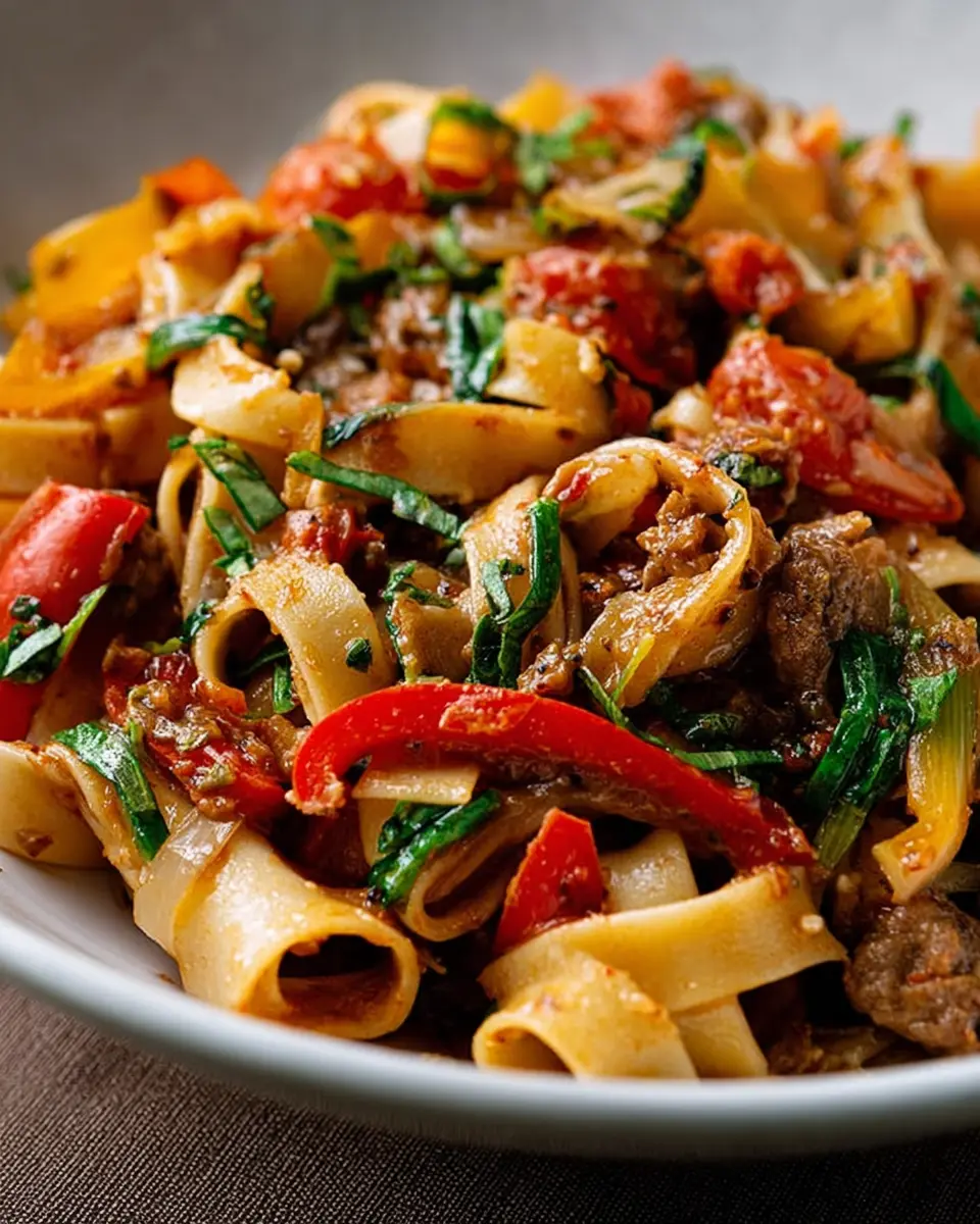 In summary, Italian Drunken Noodles are a delightful fusion dish that perfectly marries Italian flavors with Thai inspiration. The combination of spicy sausage and vibrant vegetables makes each bite a treat. Give this recipe a try, and elevate your pasta game to new heights! Taste the joy today!