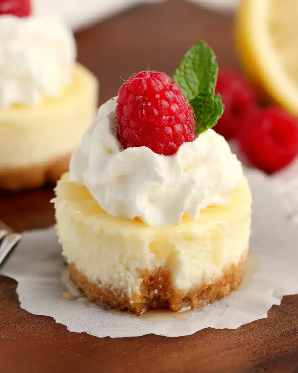 In summary, these delightful mini lemon cheesecakes are a perfect blend of tangy and sweet, sure to impress any guest. Their effortless preparation and refreshing taste make them ideal for gatherings or a cozy night in. Enjoy this treat, and be sure to share your experience with friends!
