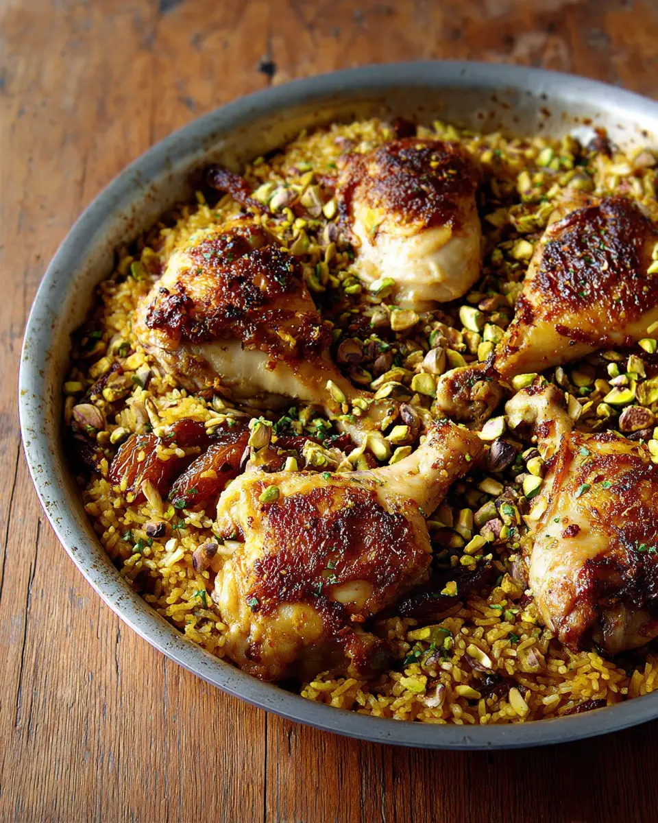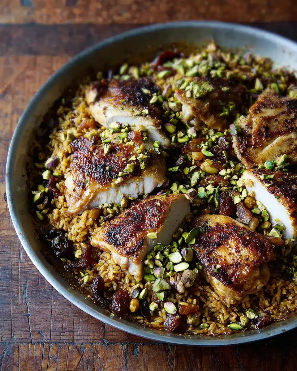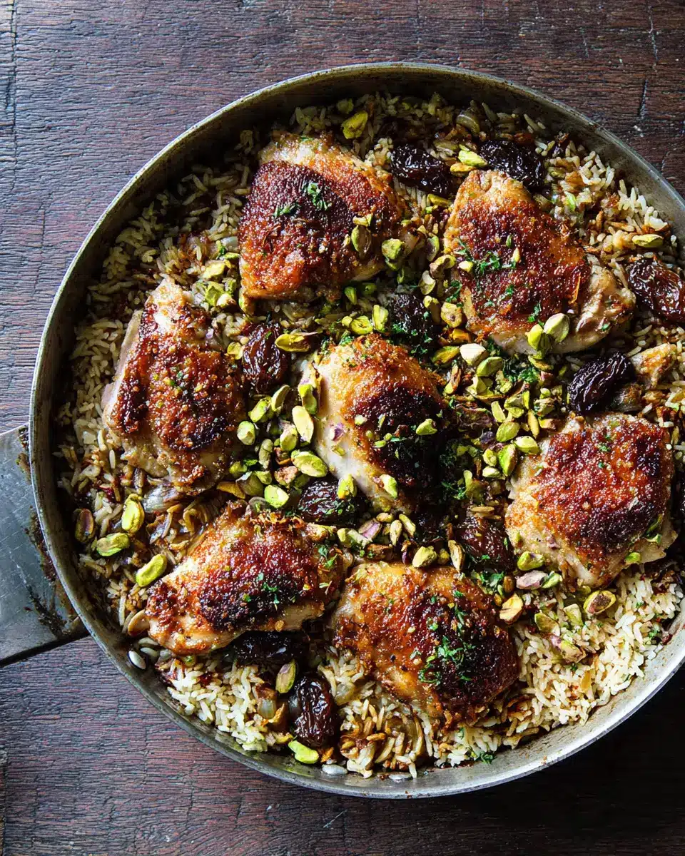 Moroccan-Spiced Chicken and Rice with Dates and Pistachios