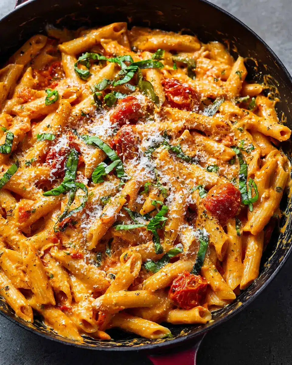 Absolutely! You can easily make this one pan creamy tomato pasta gluten-free by substituting regular penne pasta with gluten-free pasta. Many brands offer great gluten-free options that mimic the texture and flavor of traditional pasta. Just ensure to follow the cooking instructions on the package, as they may differ slightly from regular pasta.
