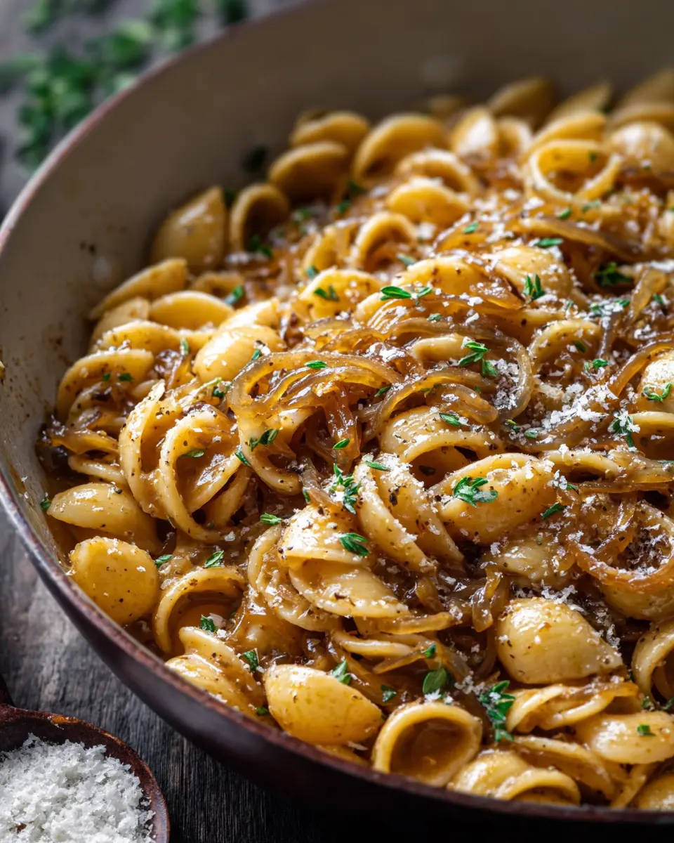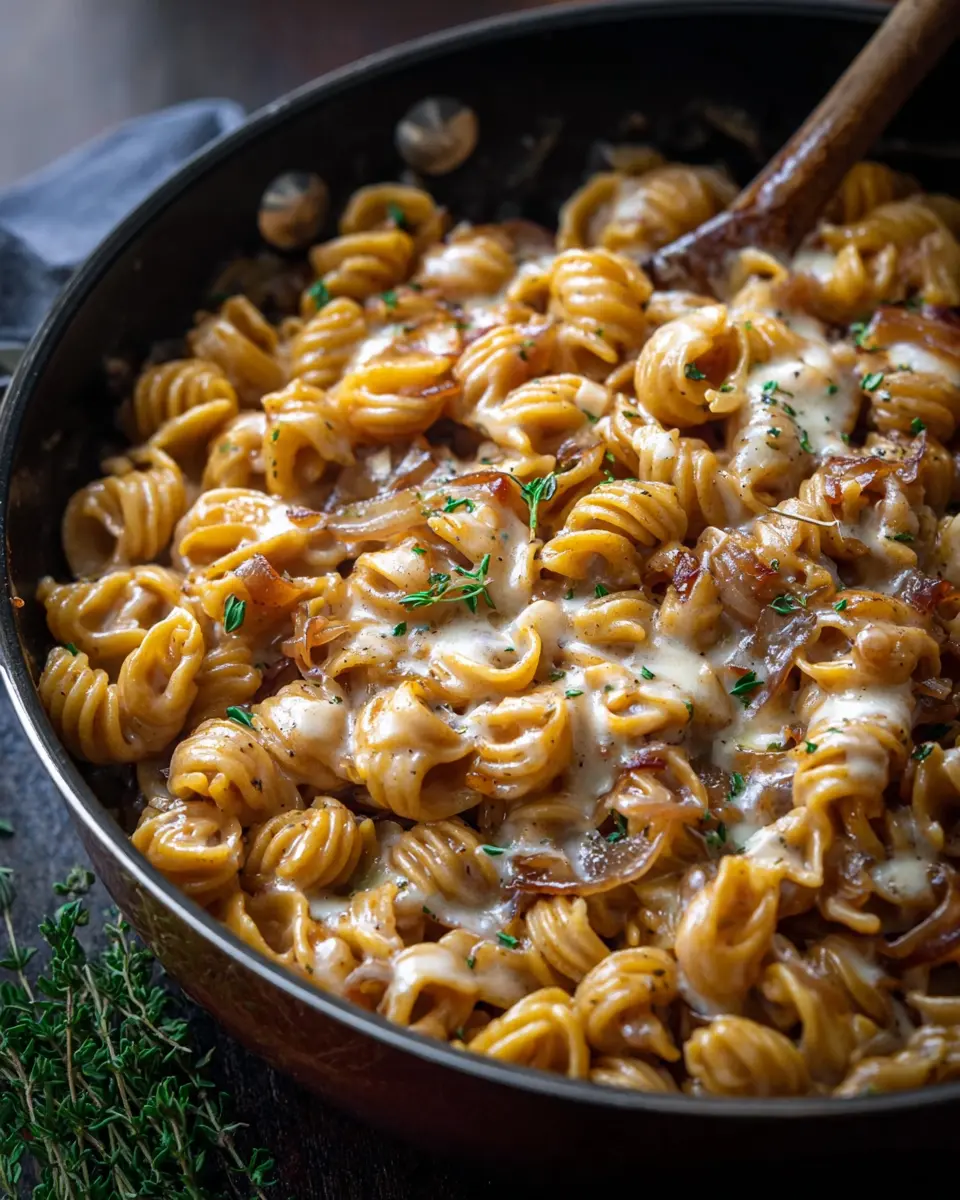 For a delightful twist on the classic one pot French onion pasta, add a handful of fresh spinach during the final minutes of cooking. It wilts beautifully and adds an extra layer of flavor and nutritional benefits. You can also blend in a splash of cream or a dollop of mascarpone for an extra creamy texture that complements the savory caramelized onions.
