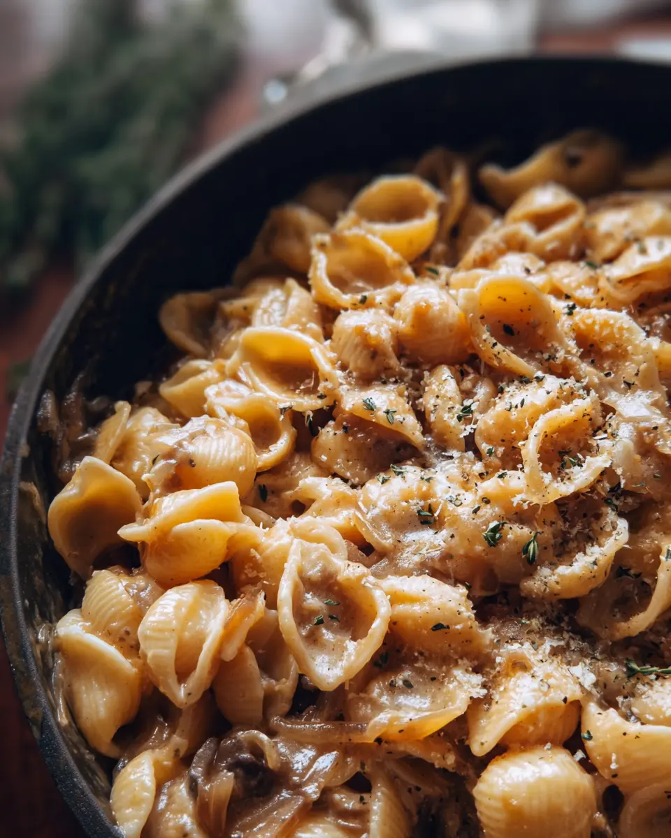 Enhance the one pot French onion pasta experience by adding a sprinkle of fresh herbs like parsley or chives right before serving. Not only do they add a pop of color, but they also contribute vibrant flavors. For an extra crunchy texture, consider toasting some breadcrumbs in olive oil and herbs, then scattering them on top. This will create a delightful contrast to the creamy pasta.