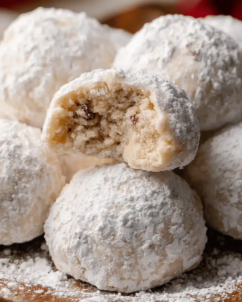 Presentation is key when serving your snowball cookies. Place them in an elegant dessert stand, or arrange them on a festive platter with a delicate dusting of extra powdered sugar on top. Adding some fresh mint leaves or seasonal berries can create a beautiful contrast and make the cookies even more inviting. You could also include a handwritten recipe card for a personal touch or gift them in decorative boxes for friends and family to enjoy!