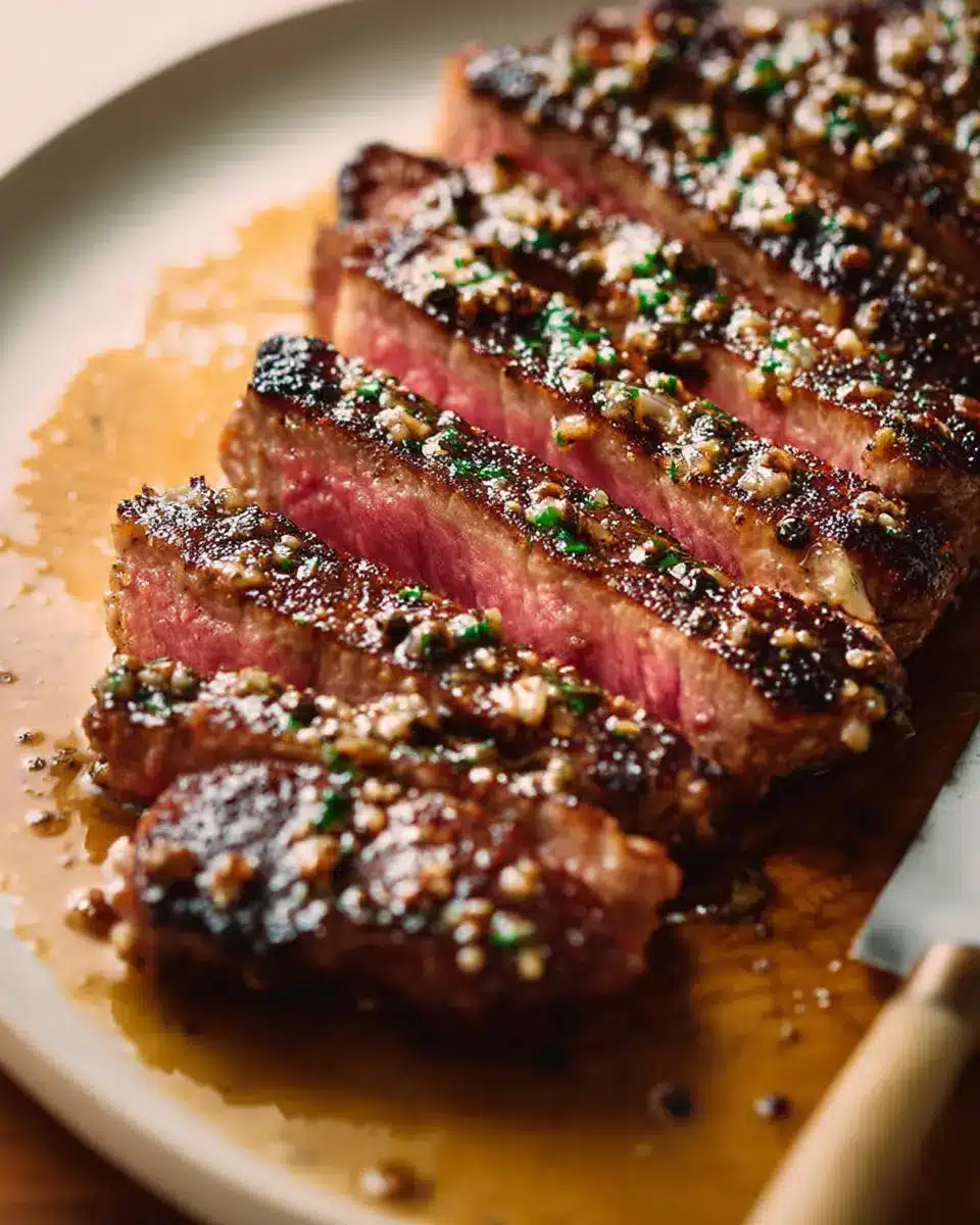 Now comes the fun part! Heat a tablespoon of unsalted butter and a teaspoon of olive oil in a 10-inch carbon-steel pan over medium heat. Once the mixture is sizzling and golden, carefully place your steaks in the pan. For a medium-rare finish, cook for about 4 minutes on each side. The sizzling sound is music to your ears! After searing, transfer the steaks to a plate and tent them with foil. This resting period lets the juices redistribute, keeping your steaks wonderfully tender.