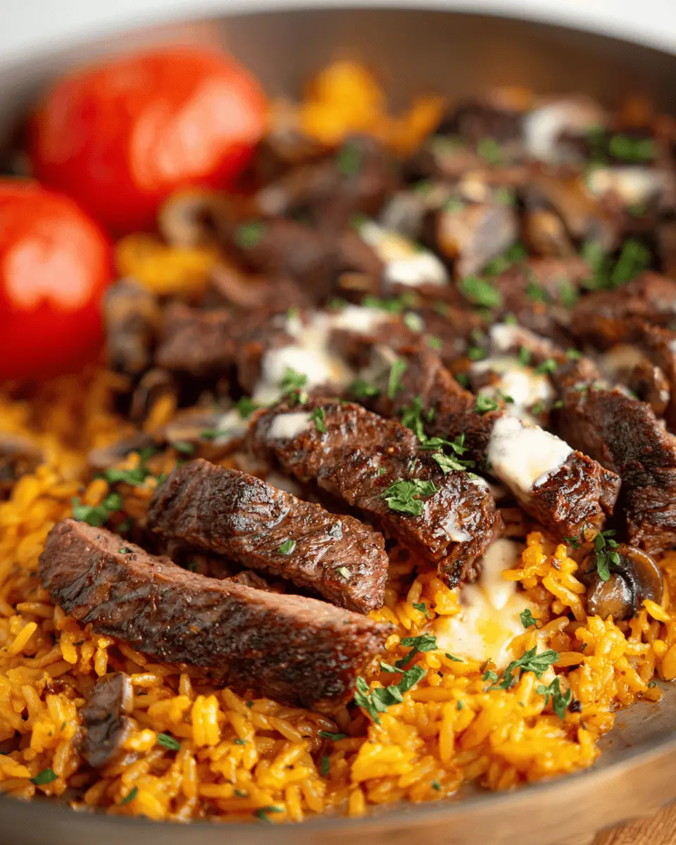 In conclusion, Steak and Queso Rice is a delightful dish that transforms your weeknight meals into a flavor-packed feast. Its combination of tender steak, creamy queso, and perfectly cooked rice strikes the ideal balance of taste and simplicity. Give it a try, and watch your dinner table come alive!