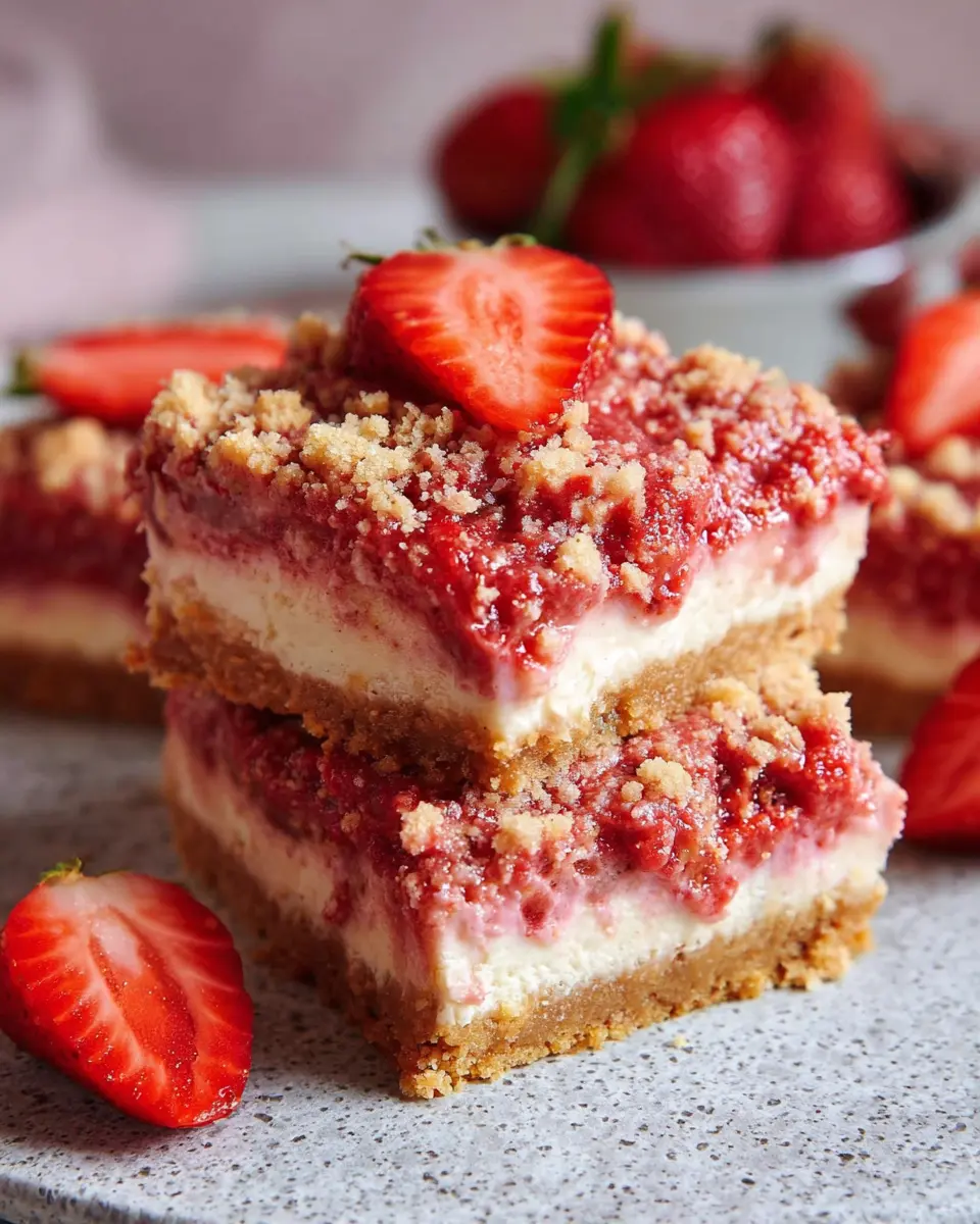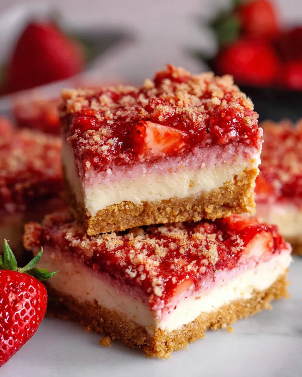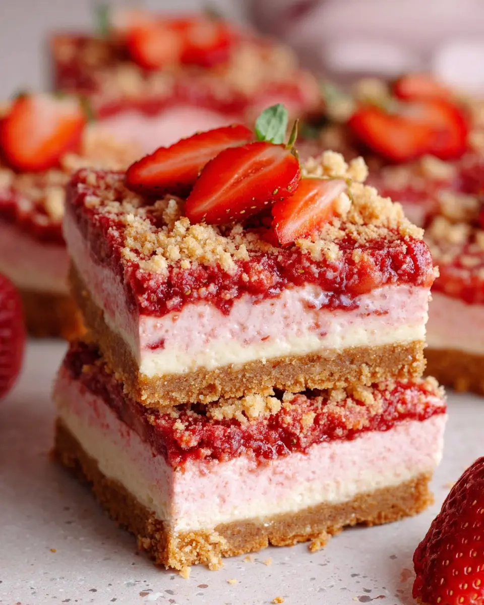 Once chilled, slice them up, and you’re ready to enjoy a fantastic treat that combines the best of strawberry shortcake and cheesecake. Perfect for gatherings or simply indulging yourself, these bars promise a delightful experience in every bite!