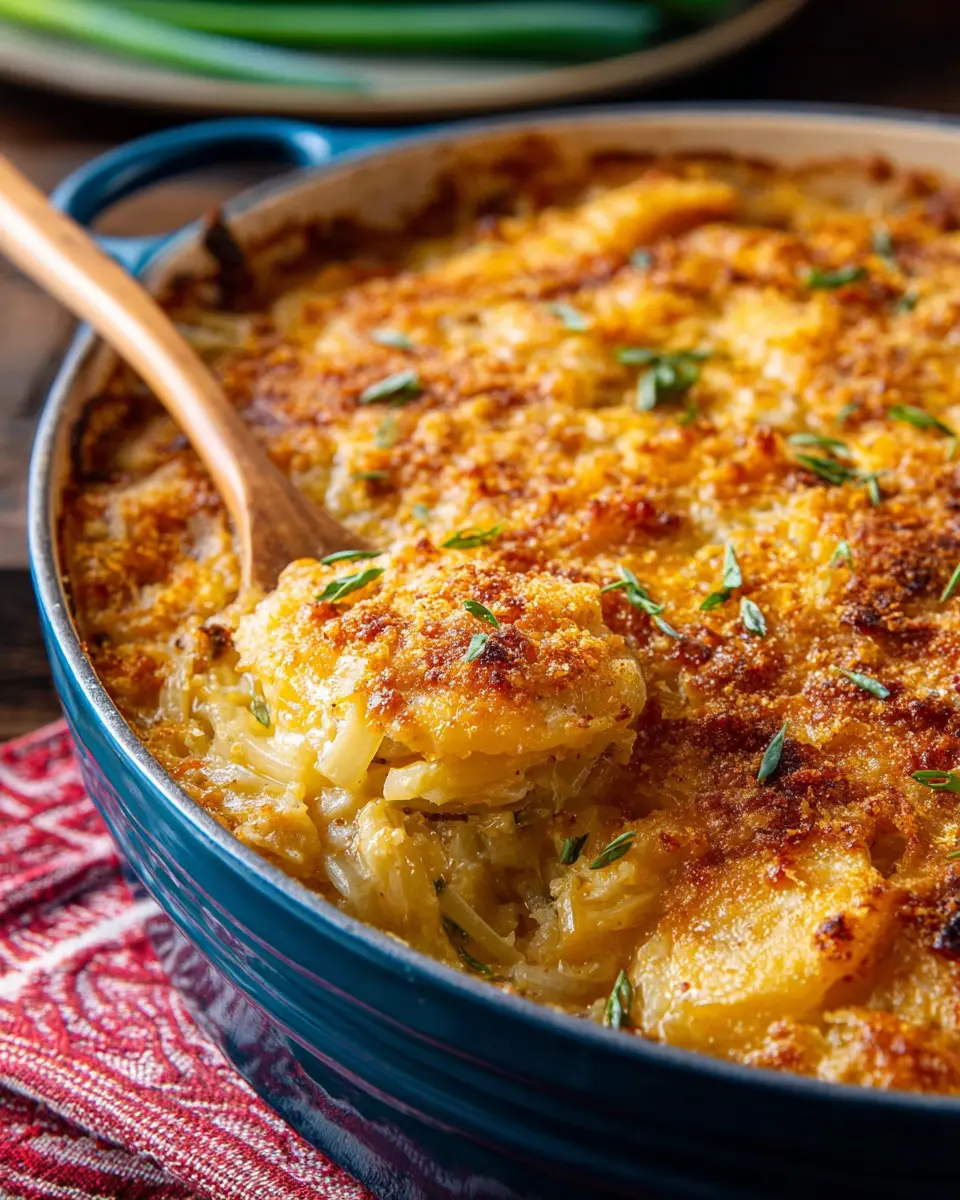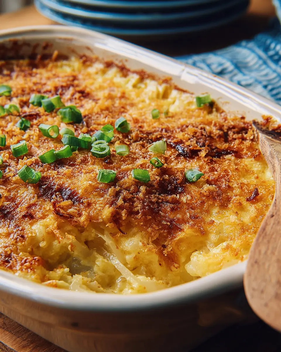 Imagine the aroma of melting cheese and caramelized onions mingling in the kitchen as friends gather around the dinner table. Not only does this dish satisfy the taste buds, but it also nourishes the soul. The textures—from the smooth, creamy filling to the crispy topping—add dimension to every bite. Plus, it’s super versatile! Pair it with simple grilled chicken, or serve it as a side for a festive gathering.